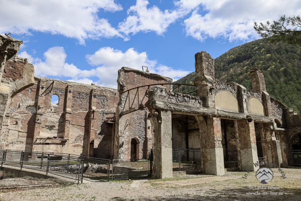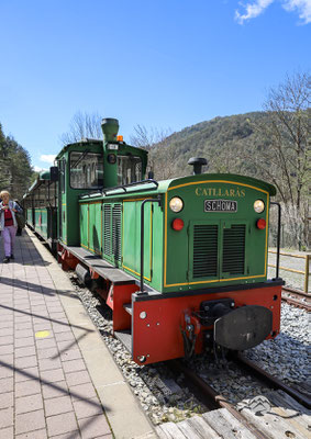 Antoní Gaudí besuchen wir in La Pobleta de Lillet. Irgendwo im Nirgendwo mitten in einer grünen Berglandschaft der Vorpyrenäen versteckt, befindet sich ein ehemaliges Bergbaugebiet mit einer Zementfabrik. Einst sicherlich kein Vorzeigeort, denn die Gegend dürfte vom Qualm und Staub der Fabrik ziemlich verunreinigt gewesen sein. Heute tuckert hier allerdings ein Touristenzügle, der Tren del Ciment.