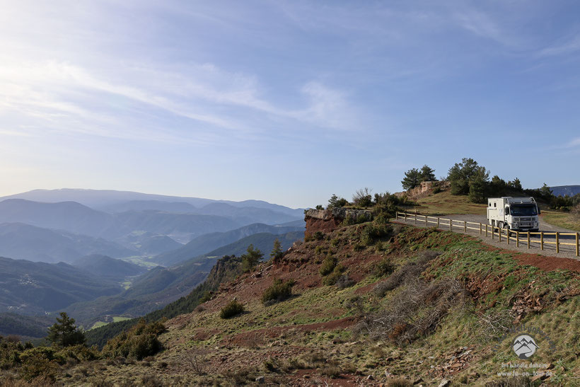Begonnen haben wir unsere Erkundung Kataloniens in den Zentralpyrenäen. Dort vereinen sich einige der höchsten Gipfel von mehr als 2.500 Metern, hier gibt es mehrere Skigebiete in denen noch Wintersport möglich und es demzufolge Ende März auch teilweise noch recht winterlich ist. So kommt die (neu eingebaute) Heizung des Mumin einige Male zum Einsatz. Sie tut ihren Dienst glücklicherweise einwandfrei, nachdem Frank bei Übernachtungen auf über 1.600 Metern Höhe eher per Zufall auf die Idee kam, das Höhenkit des Mumin zuzuschalten. Laut Betriebsanleitung erst ab 1.800 Meter erforderlich, aber siehe da: sowohl unsere Emma als auch die Heizung funktionieren mit dem Höhenkit wieder ohne zu Stottern. Man lernt eben nie aus.