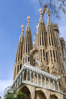 Nach einer Kaffeepause flanieren wir entlang der Av. Gaudí zur Sagrada Família. Je näher wir dieser Attraktion kommen, desto mehr steppt der Bär. Ich glaube, mit jedem Meter, den wir der berühmten Kirche näherkommen, desto teurer wird das Essen in den zahlreichen Straßenrestaurants.