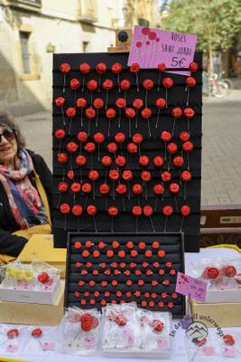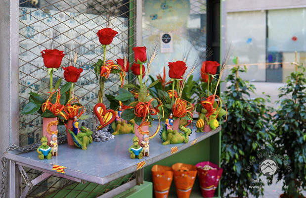 Seitdem heißt es: „Eine Rose für die Dame, ein Buch für den Herrn“. Die Katalanen verbinden den 23. April mit Rosen, Büchern und der Liebe. Wichtiger als bei uns der Valentins-Tag.