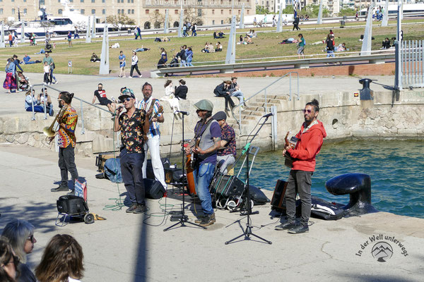 Am alten Hafen bestaunen wir schicke Yachten (wohl auch konfisziert von russischen Oligarchen), genießen schöne Ausblicke, spazieren zur Kolumbus-Statue und lauschen den groovenden Reggea-Salsa-Rhythmen einer Live-Band. Durch das Altstadtviertel Goticó mit der Kathedrale und den Resten der alten Stadtmauern Barcelonas gelangen wir wieder zurück zu unserer Busstation. Auch heute wieder platte Füße, aber voller neuer Eindrücke. Und was uns besonders aufgefallen ist: Trotz des immensen Besucheraufkommens war die Atmosphäre in der Stadt absolut entspannt und friedlich.