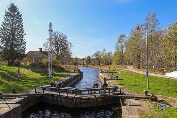 Der 200 Jahre alte Götakanal verbindet nicht nur die beiden großen Seen Vänern und Vättern, sondern auch Schwedens West- und Ostküste. Von Göteborg am Skagerrak sind es rund 390 Kilometer bis zur Mündung in die östliche Ostsee. Der spektakulärste Abschnitt liegt zwischen dem Vätternsee und Söderköping, wo der Kanal in die Ostsee mündet. Der Götakanal muss einen Höhenunterschied überwinden, was mit zahlreichen Schleusen und Schleusentreppen gelingt. Ein Meisterwerk der Technikgeschichte und von der UNESCO geadelt. Heute ist der Götakanal den Freizeitkapitänen und Ausflugsdampfern vorbehalten. Die Saison beginnt Ende Mai. Schiffe werden wir also nicht zu Gesicht bekommen, aber wir wollen dem geschichtsträchtigen Kanal dennoch einen Besuch abstatten.
