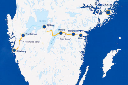 Der 200 Jahre alte Götakanal verbindet nicht nur die beiden großen Seen Vänern und Vättern, sondern auch Schwedens West- und Ostküste. Von Göteborg am Skagerrak sind es rund 390 Kilometer bis zur Mündung in die östliche Ostsee. Der spektakulärste Abschnitt liegt zwischen dem Vätternsee und Söderköping, wo der Kanal in die Ostsee mündet. Der Götakanal muss einen Höhenunterschied überwinden, was mit zahlreichen Schleusen und Schleusentreppen gelingt. Ein Meisterwerk der Technikgeschichte und von der UNESCO geadelt. Heute ist der Götakanal den Freizeitkapitänen und Ausflugsdampfern vorbehalten. Die Saison beginnt Ende Mai. Schiffe werden wir also nicht zu Gesicht bekommen, aber wir wollen dem geschichtsträchtigen Kanal dennoch einen Besuch abstatten.