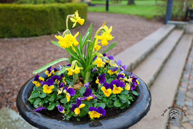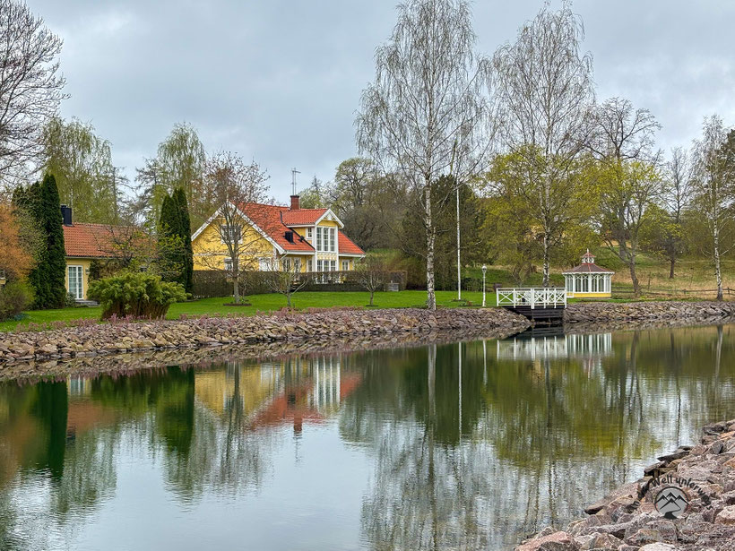 Stattdessen erledigen wir den Rest unserer Großwäsche (vier Maschinenladungen inklusive Trockner), so dass wir für die nächste Zeit gerüstet sind. Danach geht’s zu Fuß entlang dem Götakanal. Begeistert sind wir von den reizenden Häusern, teils mit Bootsschuppen und Pavillons direkt am Wasser. Hier möchte man bleiben. Überall beginnt es inzwischen auch zu blühen. Wir verlängern den Frühling und genießen Tulpen, Osterglocken, Forsythien und auch die Birken zeigen ein erstes, zartes Grün. Herrlich!